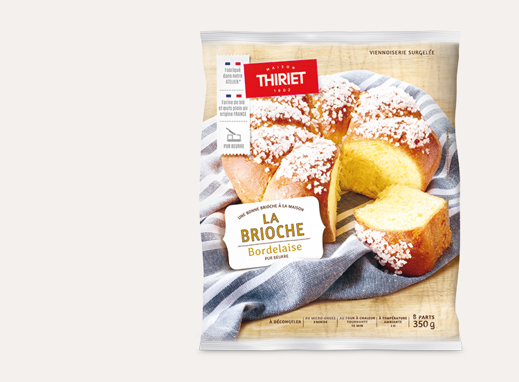 Dénomination de vente : Produit surgelé. Brioche bordelaise pur beurre, au parfum de fleur d’oranger