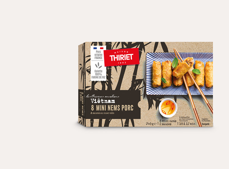 Déposez les mini nems encore surgelés sur une plaque recouverte d’un papier cuisson. Enfournez à mi-hauteur et laissez réchauffer 10 à 12 minutes à 210°C (Th 7) (12 à 14 minutes dans un four traditionnel) en retournant à mi-temps.